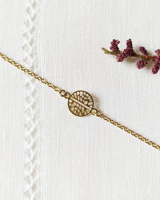Découvrez cette pièce élégante et délicate qui allie simplicité et sophistication. Fabriqué en métal doré à l'or fin 24 carats de haute qualité, ce bracelet se distingue par son charmant pendentif rond, orné d'un motif subtil qui attire le regard sans être envahissant.