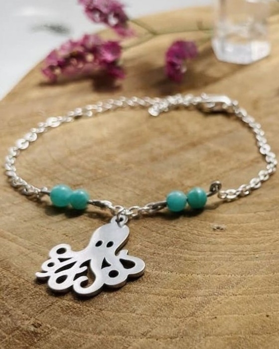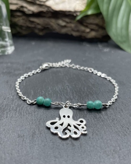Bracelet de 13,5 cm (extensible à 18,5 cm) avec un pendentif en forme de pieuvre.